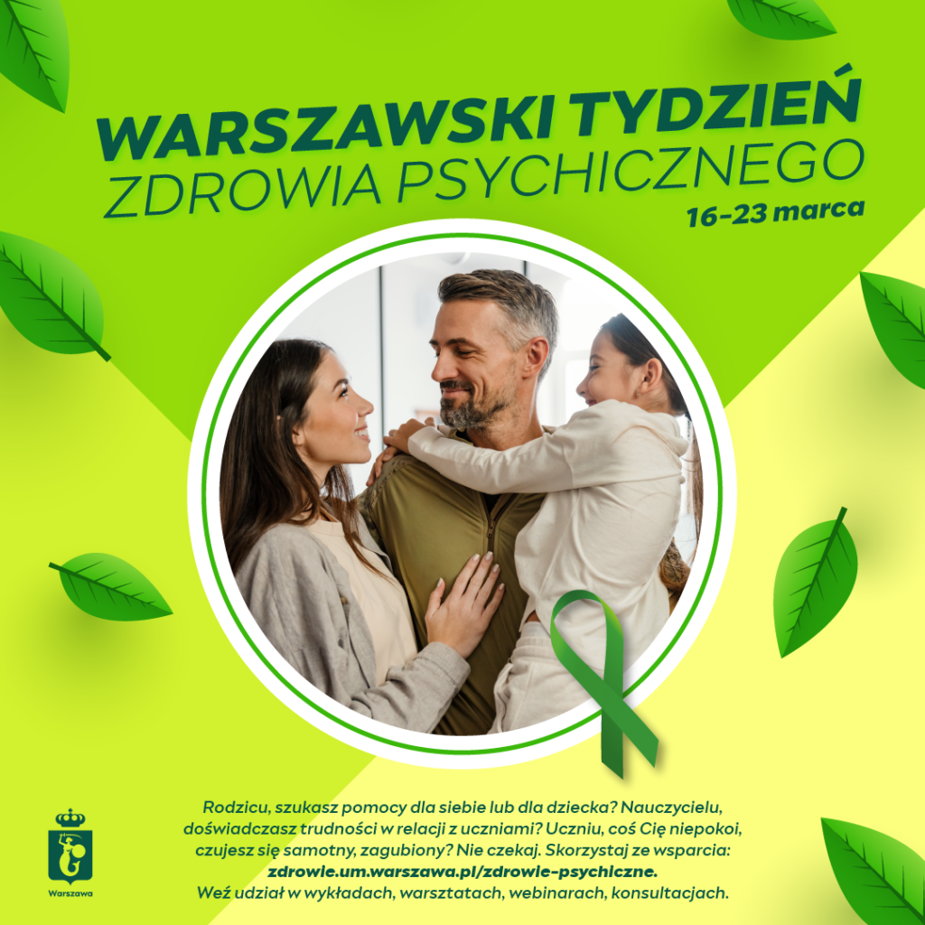W ramach akcji Warszawski Tydzień Zdrowia Psychicznego, który potrwa od 16 do 23 marca 2024 r. odbędą się liczne bezpłatne wykłady, warsztaty, webinary. Mieszkańcy będą mogli także skorzystać z bezpłatnych porad i konsultacji indywidualnych. Akcja skierowana jest do rodziców i opiekunów, nauczycieli oraz do młodzieży.